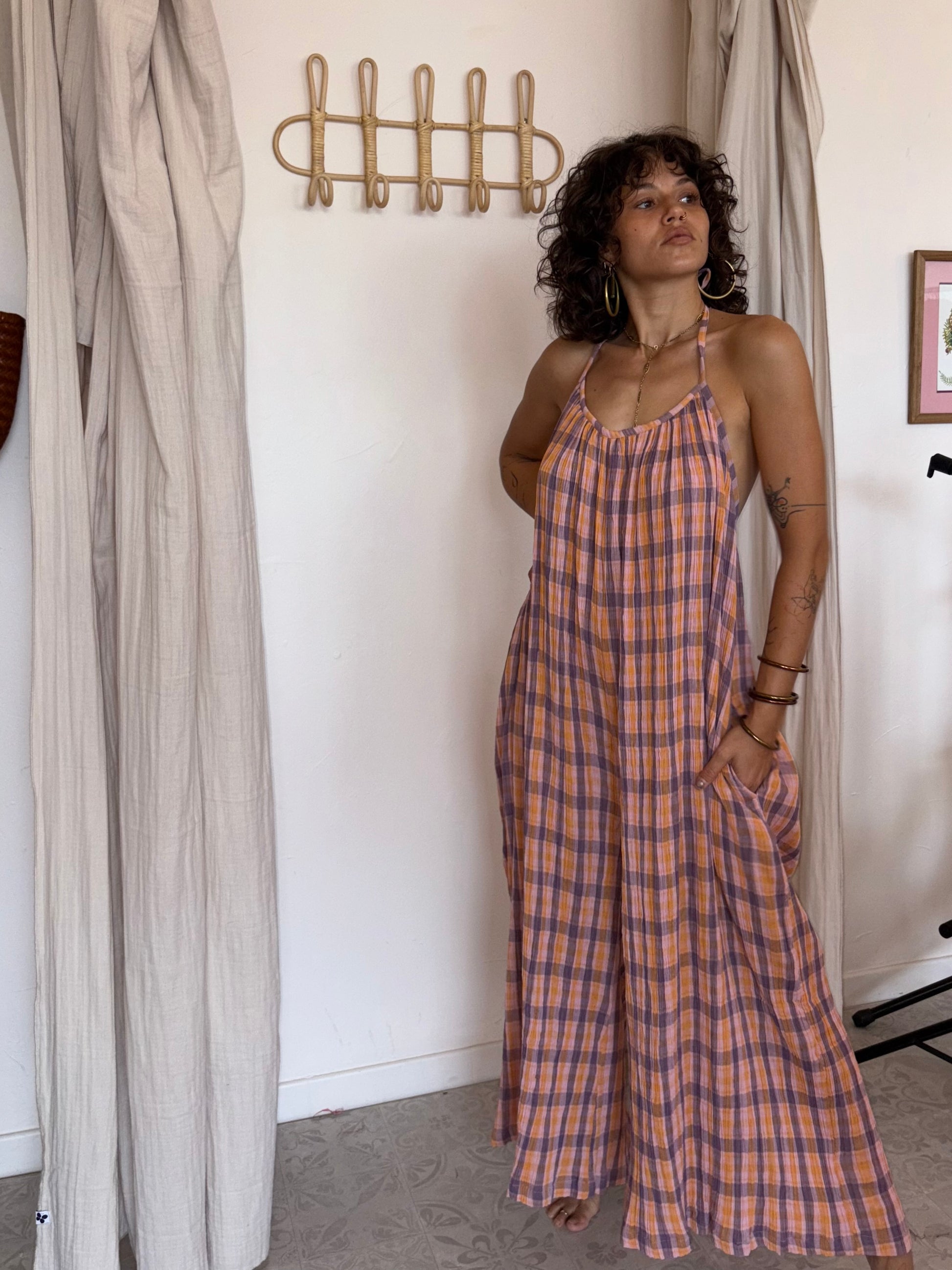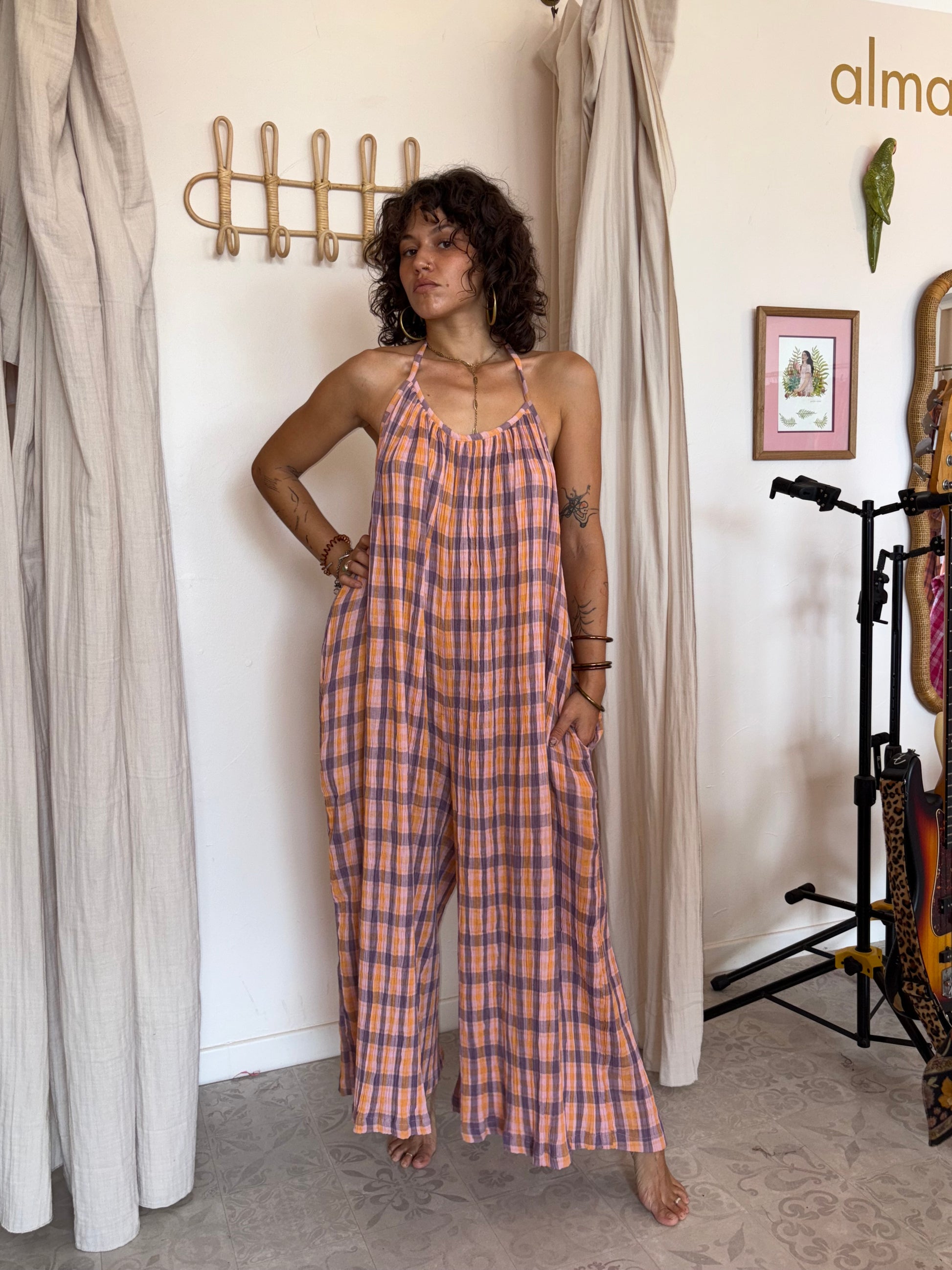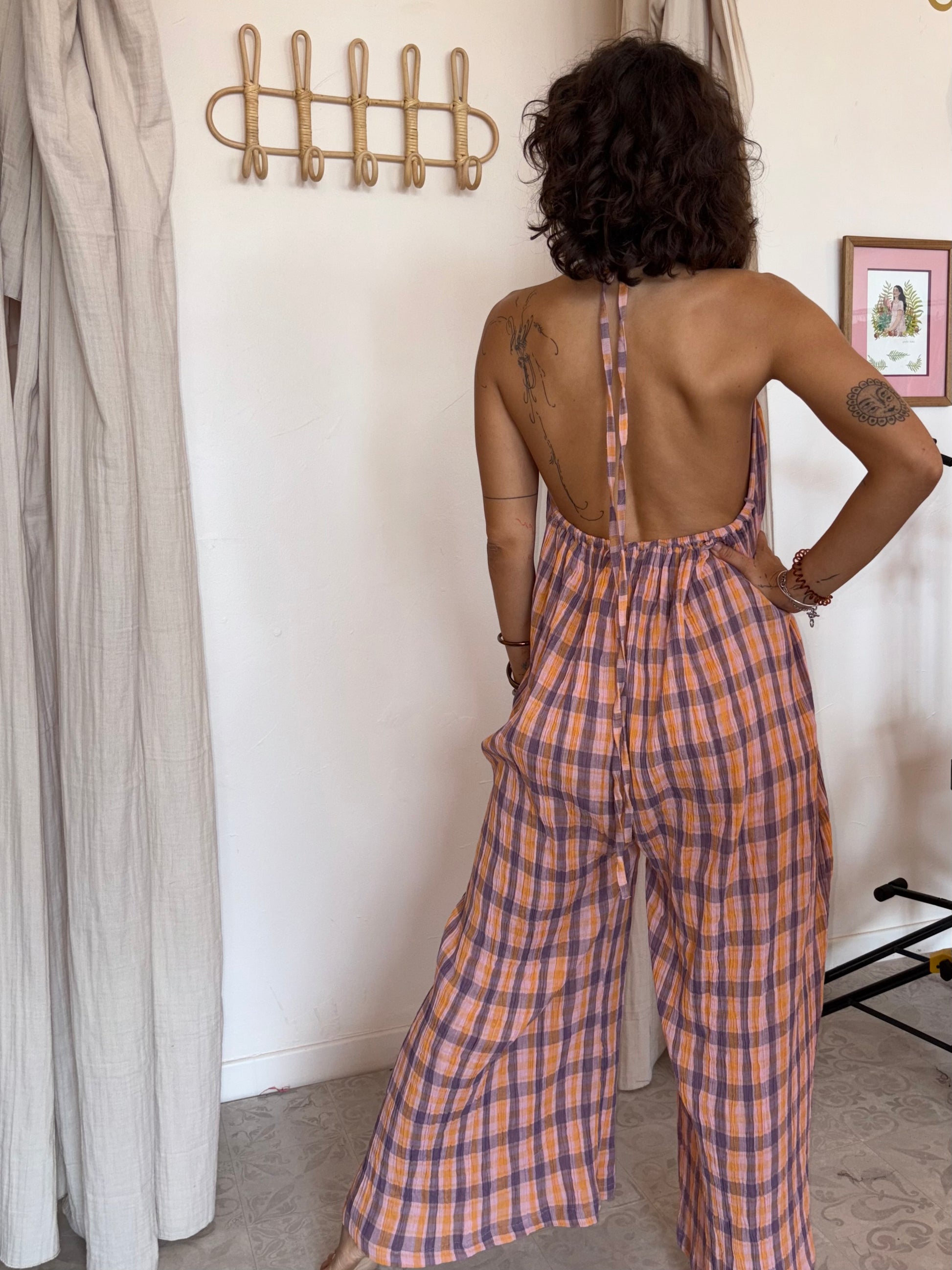 La combinaison Anne a une coupe bohème et élégante. Elle a une belle échancrure au dos avec un élastique.