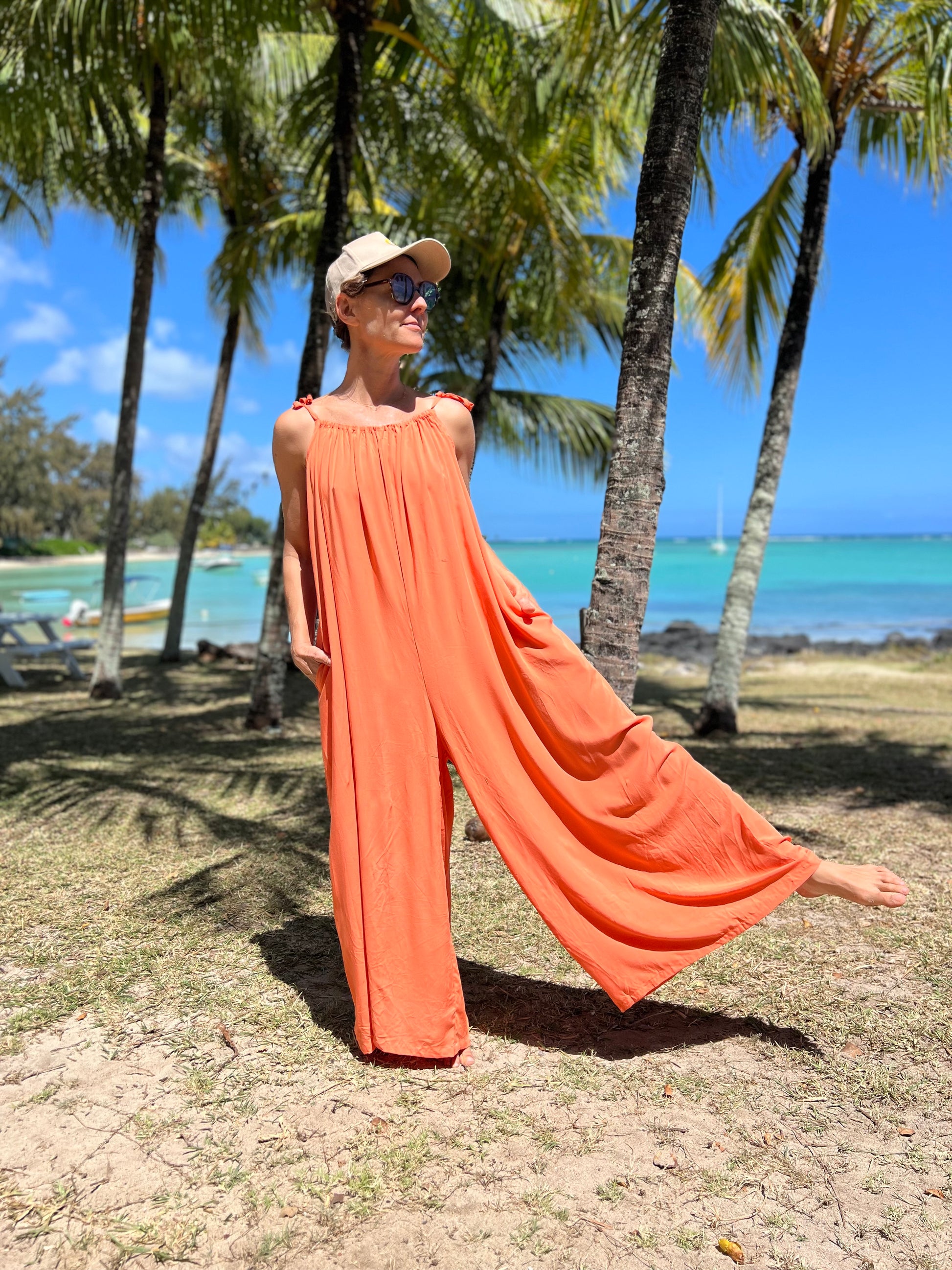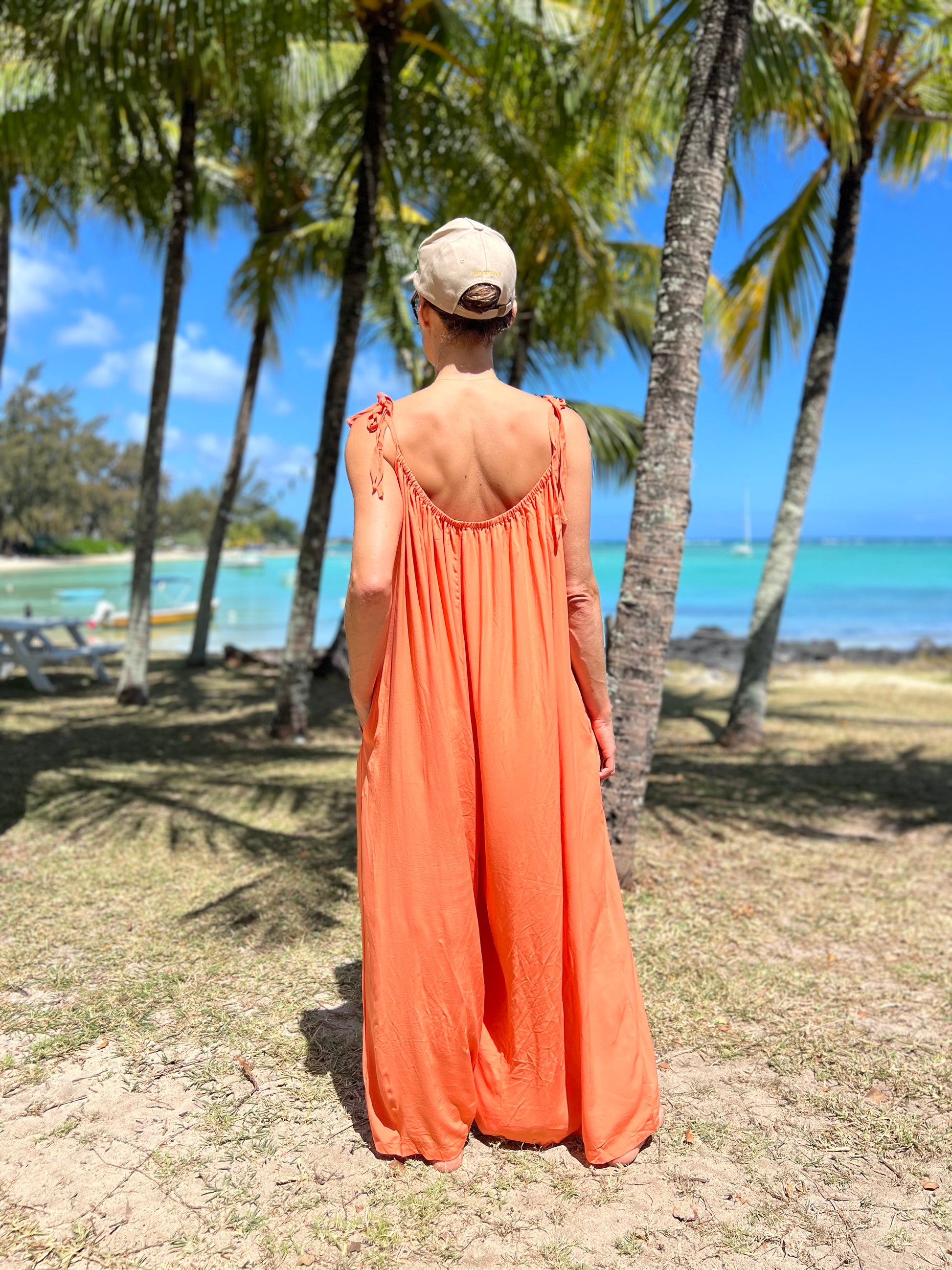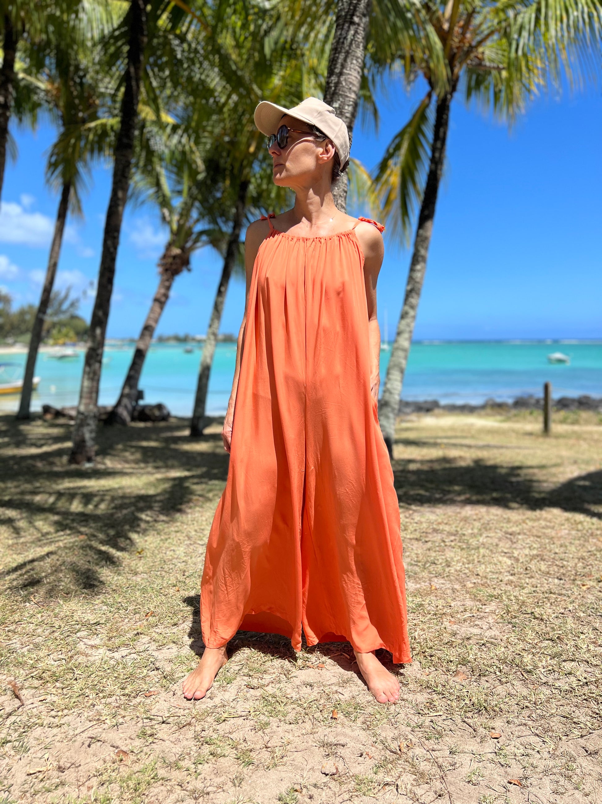 La combinaison Christophine a une coupe bohème et élégante. Elle a de fines bretelles nouables qui permettent d'ajuster la combinaison et d'approfondir les décolletés comme on le souhaite.