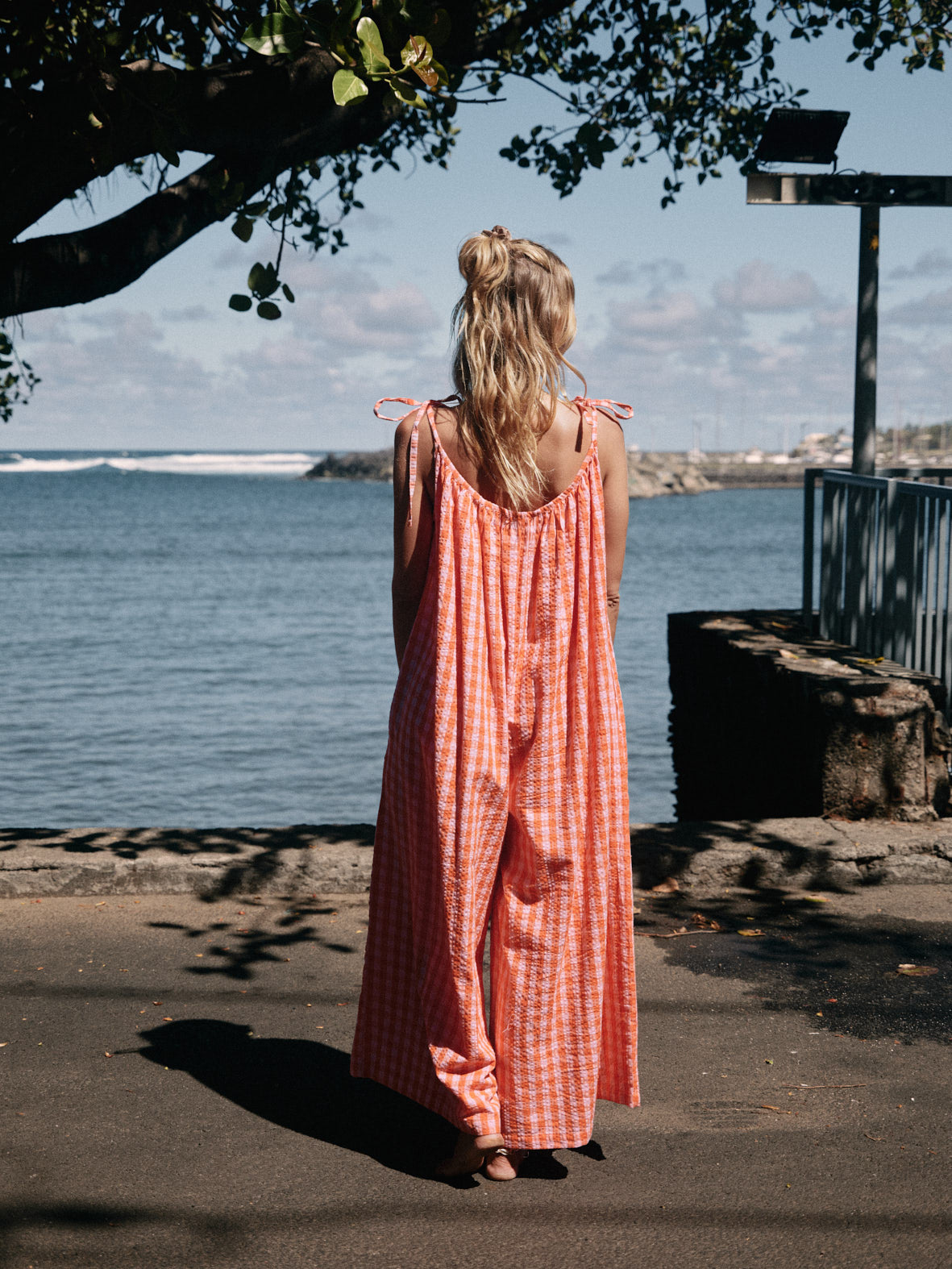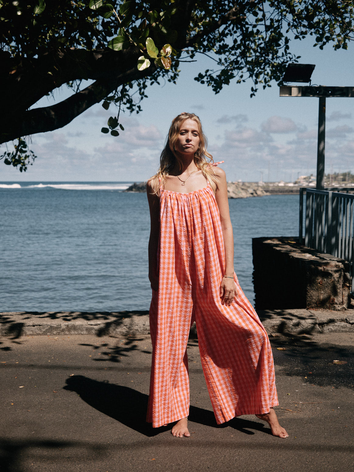 La combinaison Christophine a une coupe bohème et élégante. Elle a une belle échancrure au dos avec un élastique ainsi que de fines bretelles nouables qui permettent d'ajuster la combinaison et d'approfondir les décolletés comme on le souhaite.