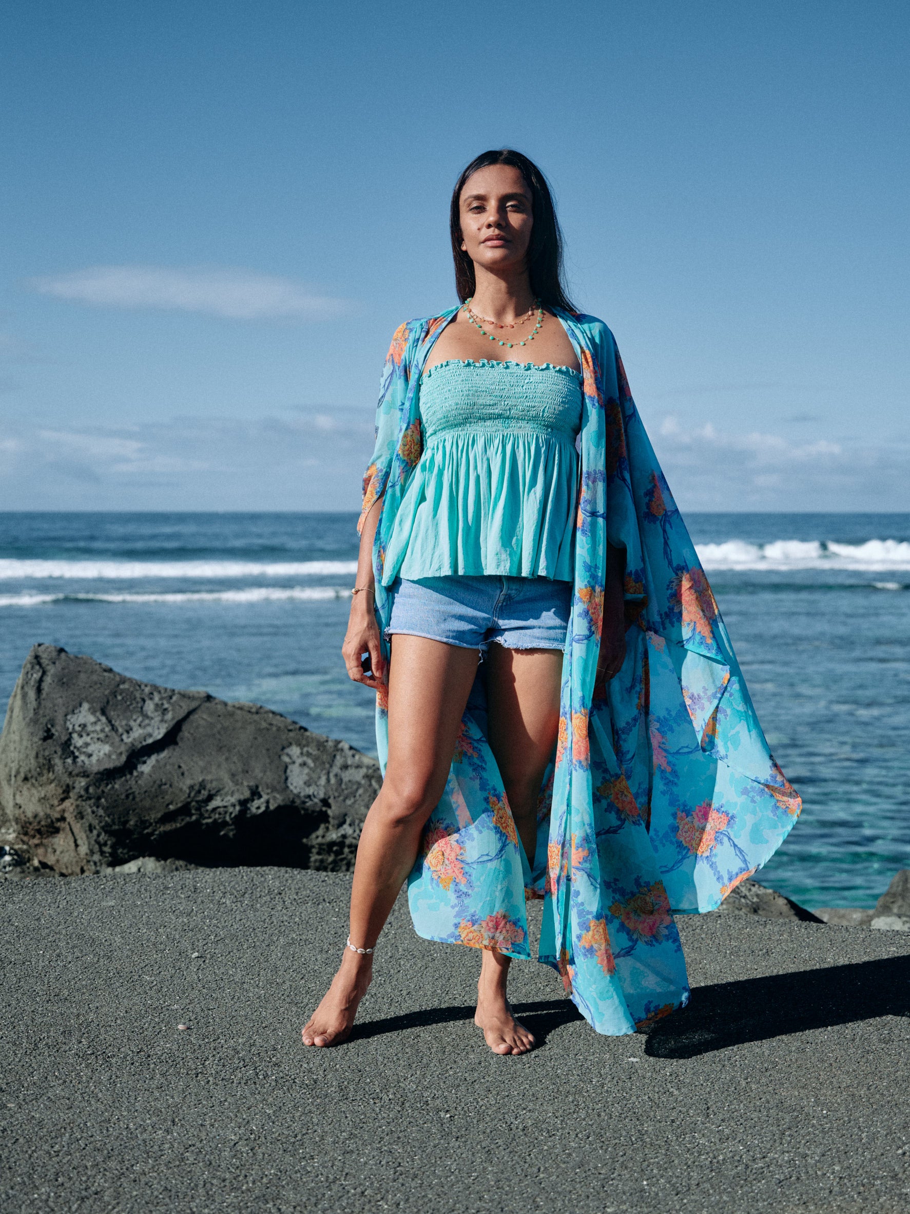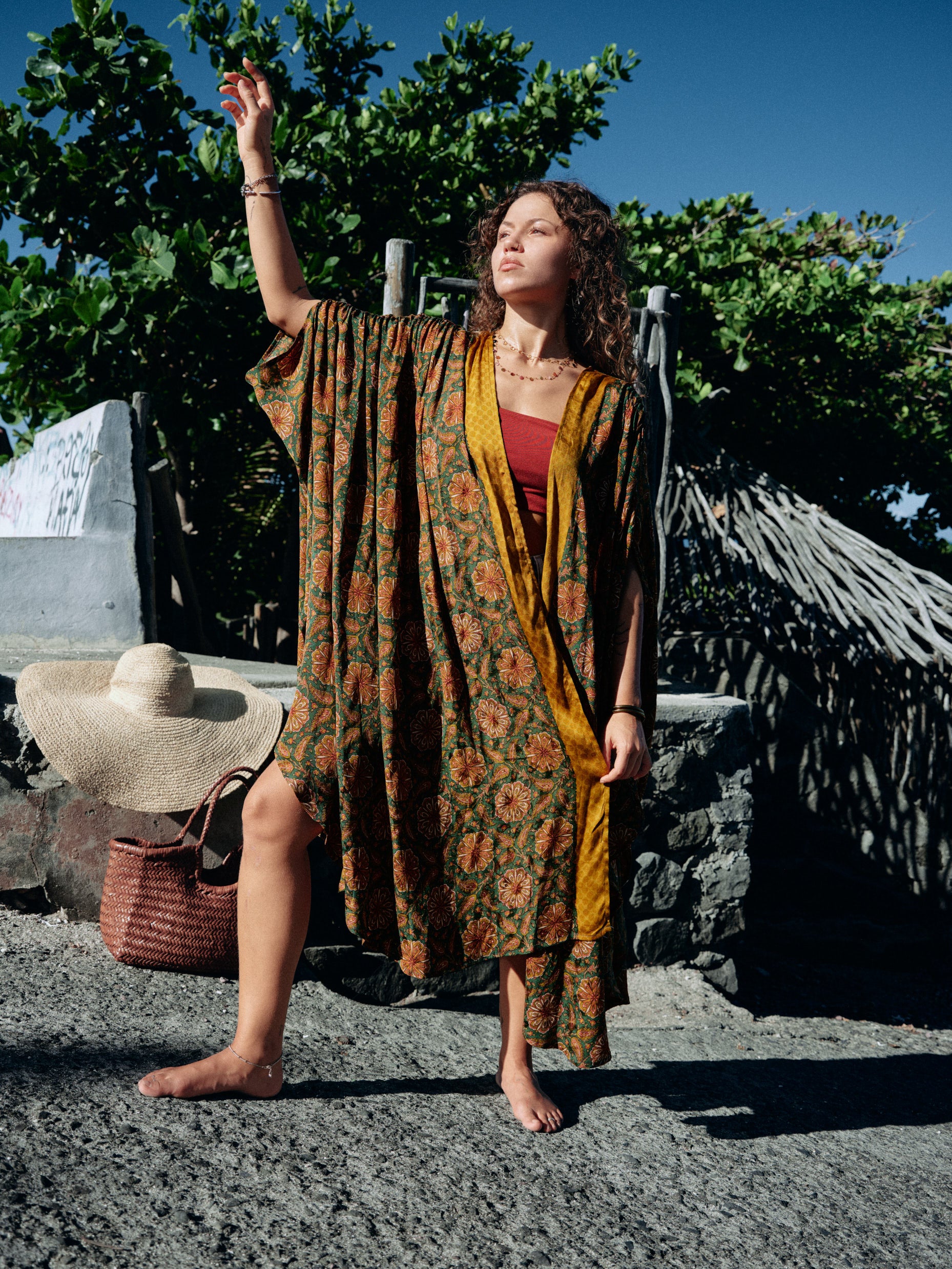 Le Kimono Meekha, une pièce bohème chic qui incarne l'élégance et le décontracté. Notre best seller est disponible en différents coloris et motifs à retrouver sur notre site. Cette pièce est unique et est fabriquée à partir d'un sari ancien en soie naturelle.