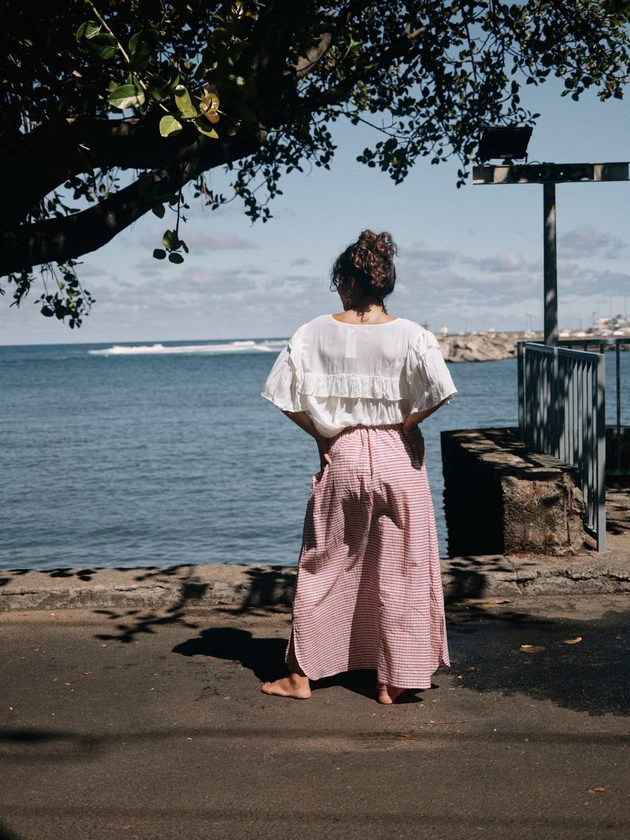 Découvrez notre jupe Caro, une jupe à la coupe street et confortabDotée d'une boutonnière à l'avant et d'un ourlet arrondi dans le bas, cette jupe présente des détails raffinés qui lui confèrent un style élégant et féminin. Ses 4 plis sous la ceinture créent un joli volume.