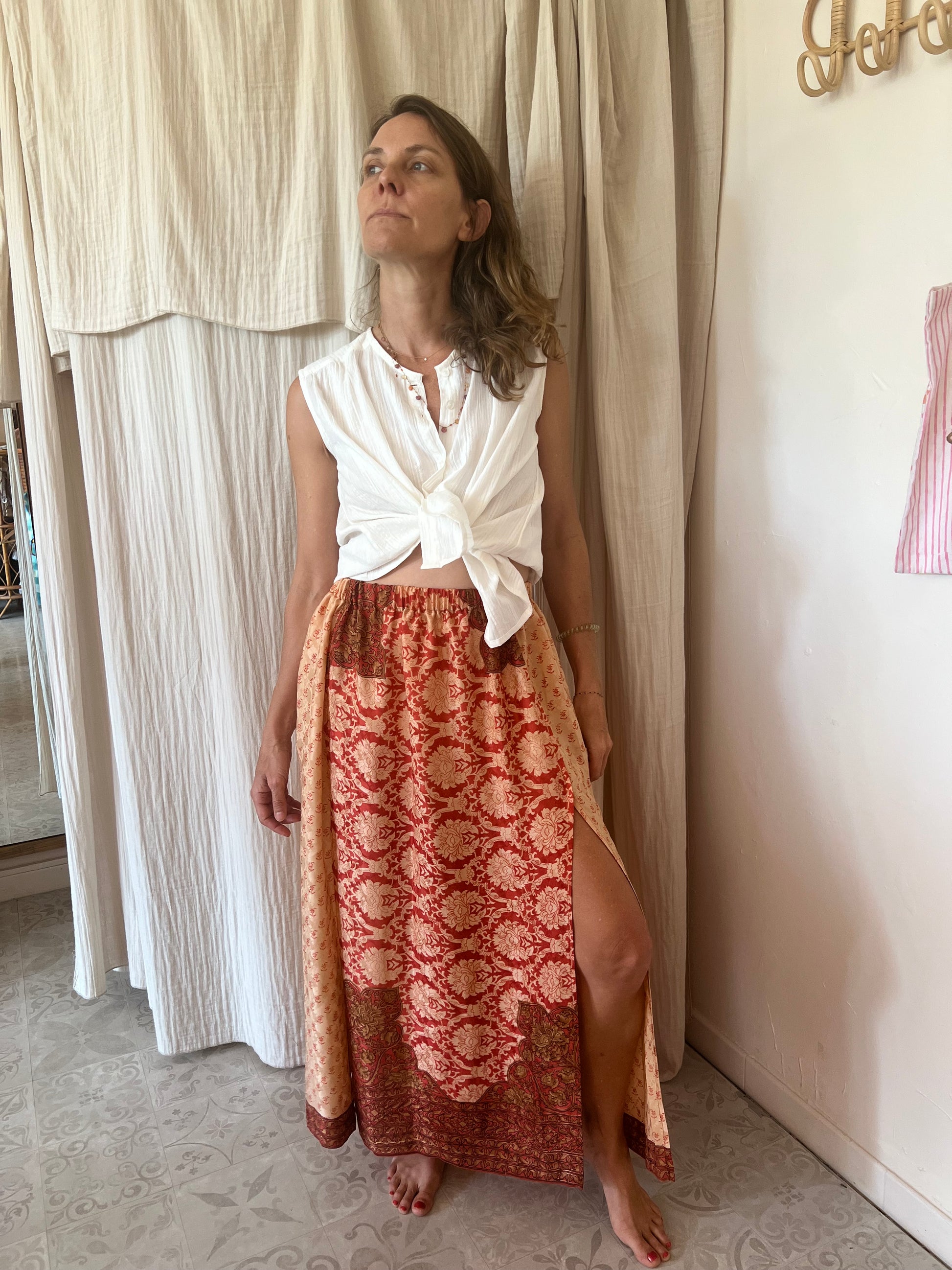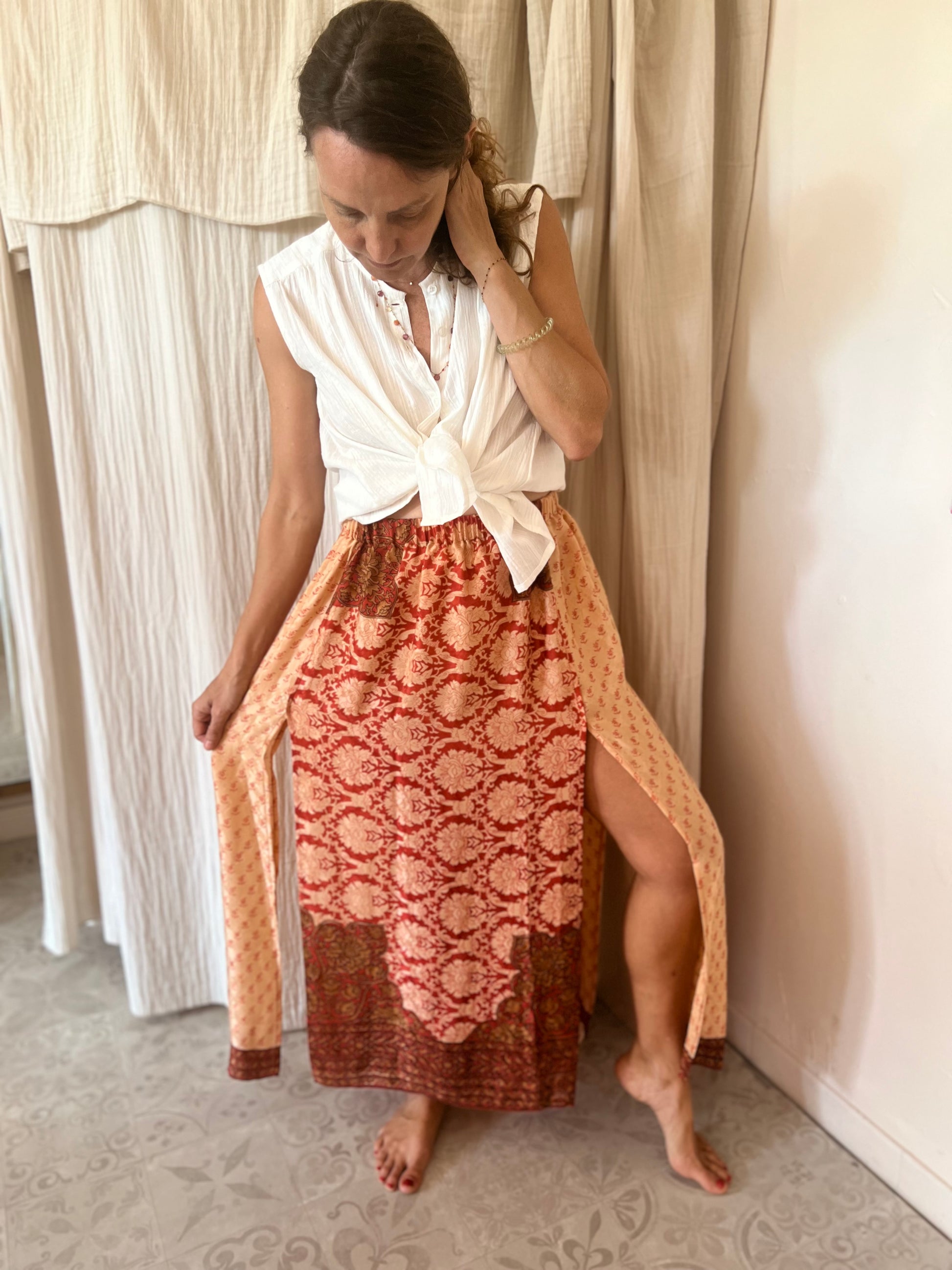 Cette jupe est une pièce unique en crêpe de soie, la plus belle qualité de la soie :