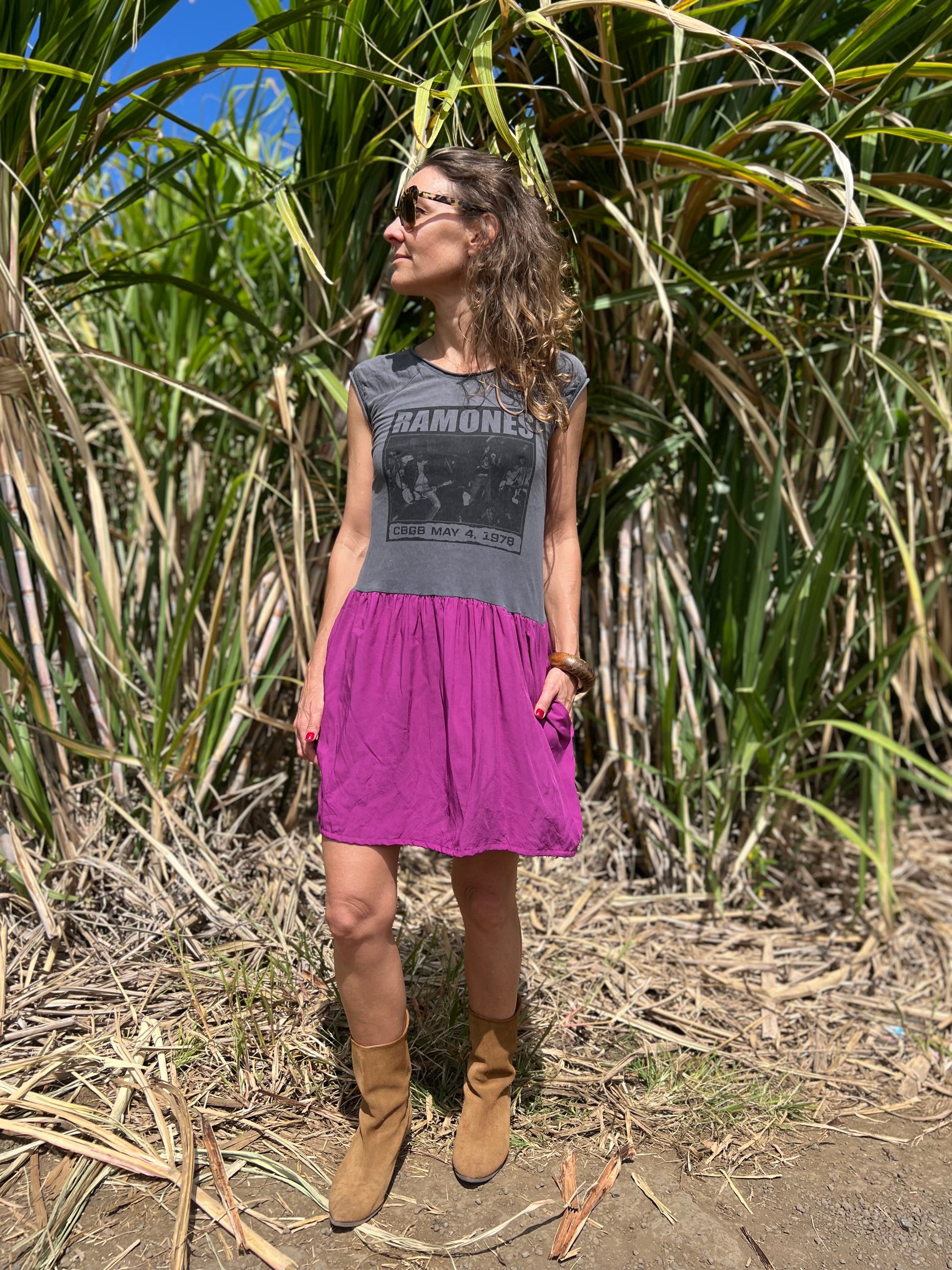 La collection capsule ALMA ROAD. Une collection toute en musique et en upcycling. Une collection en majeure partie réalisée à partir de Tshirts de groupe ou en lien avec la musique. Des pièces uniques.