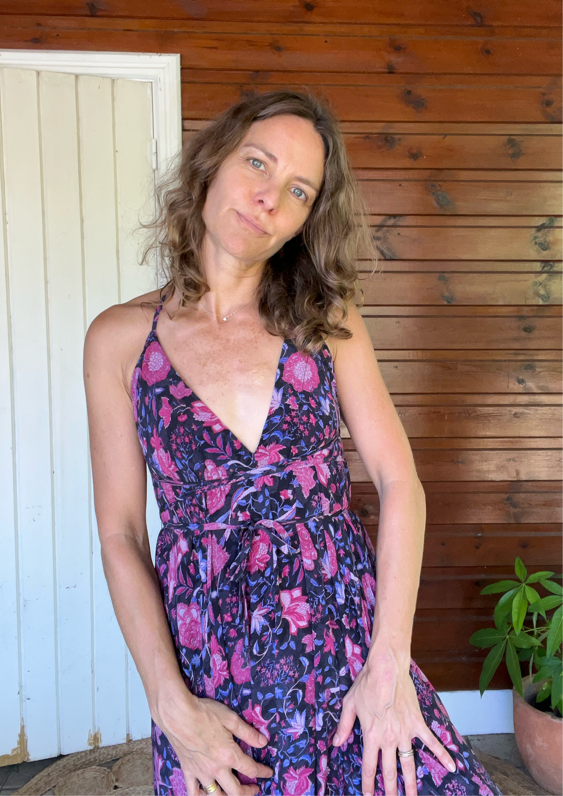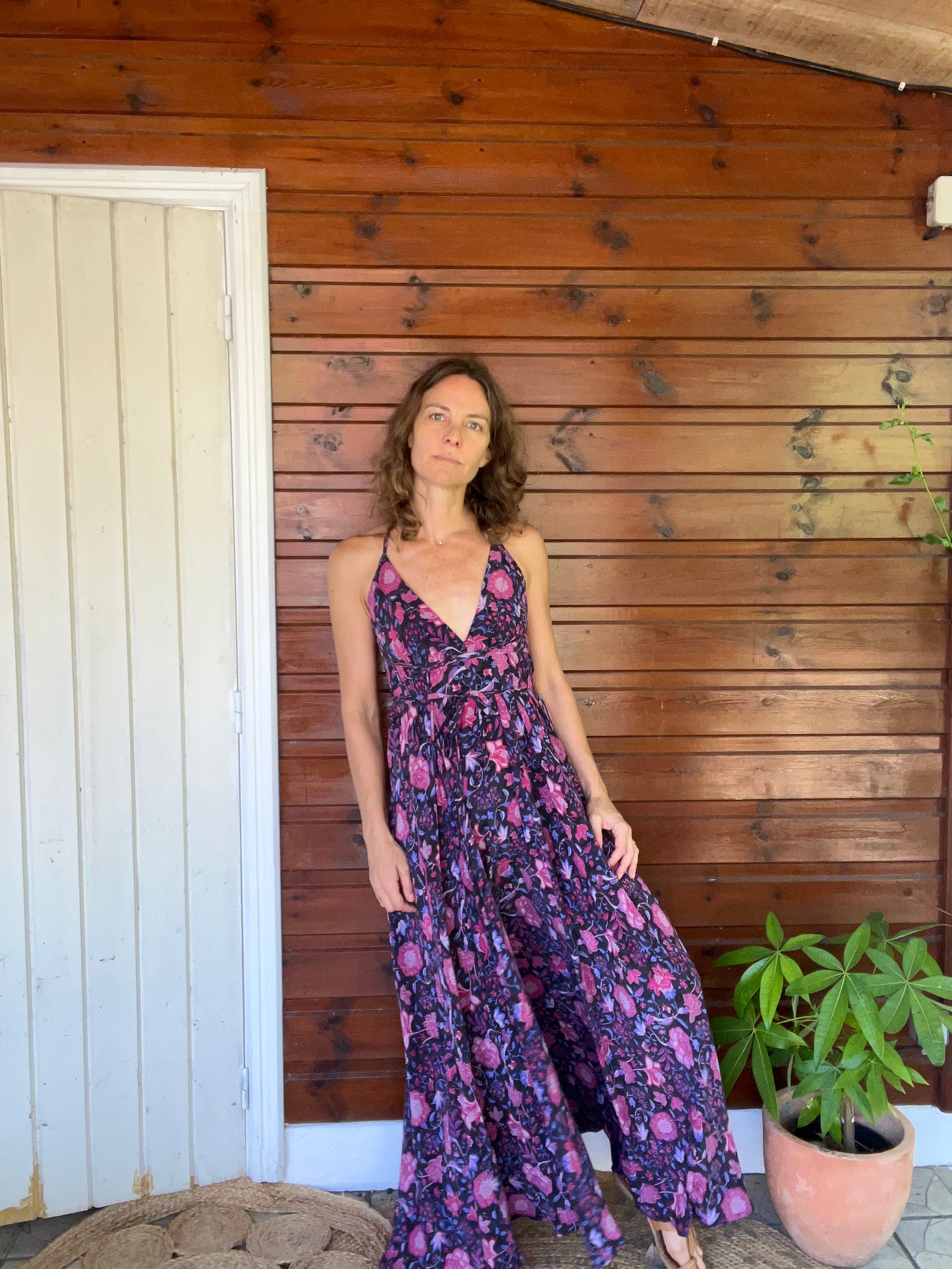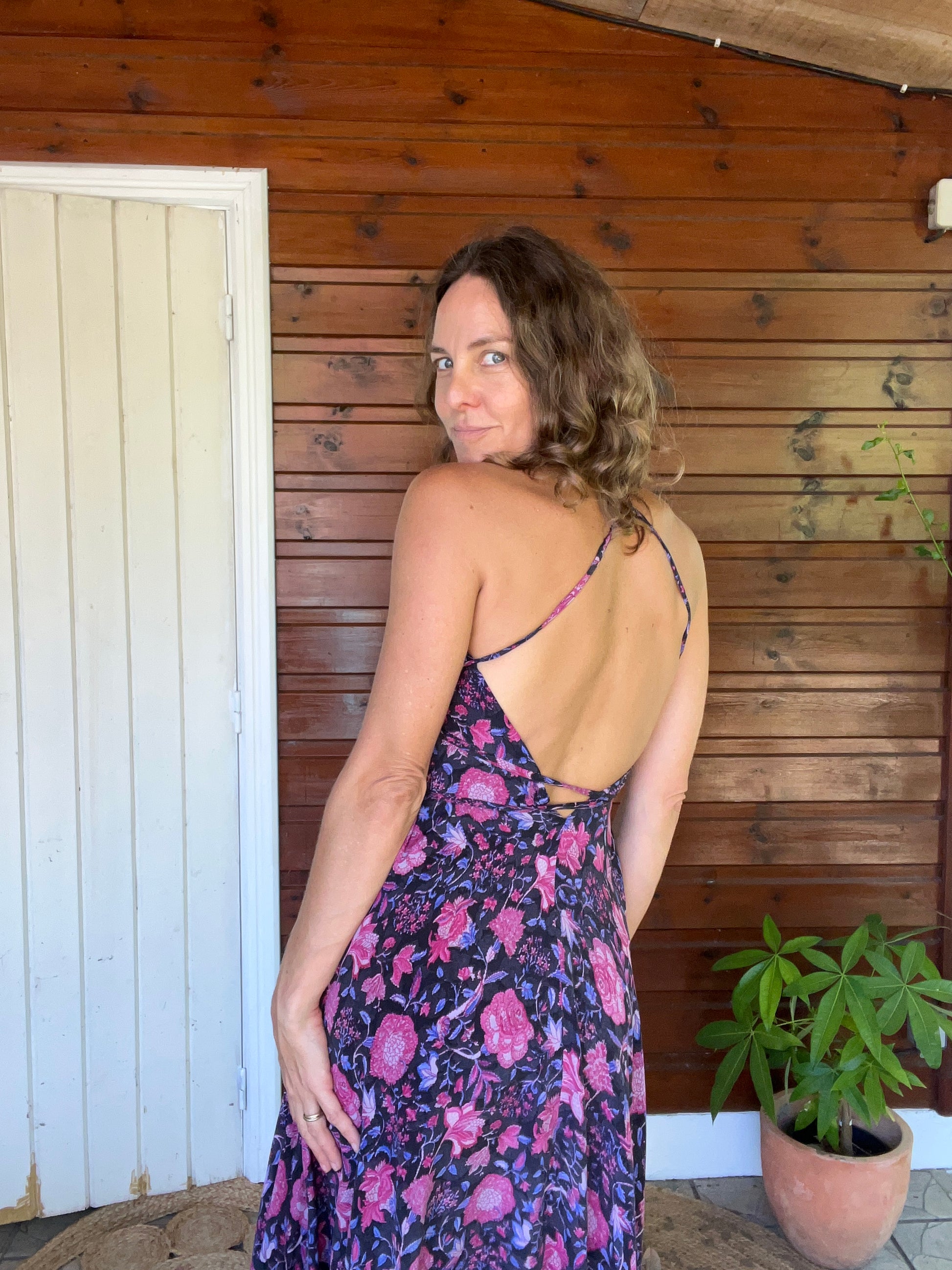 Notre Robe Azuima: bohème et sensuelle avec son joli dos. Vous pourrez user de votre créativité en lassant le lien à votre guise.