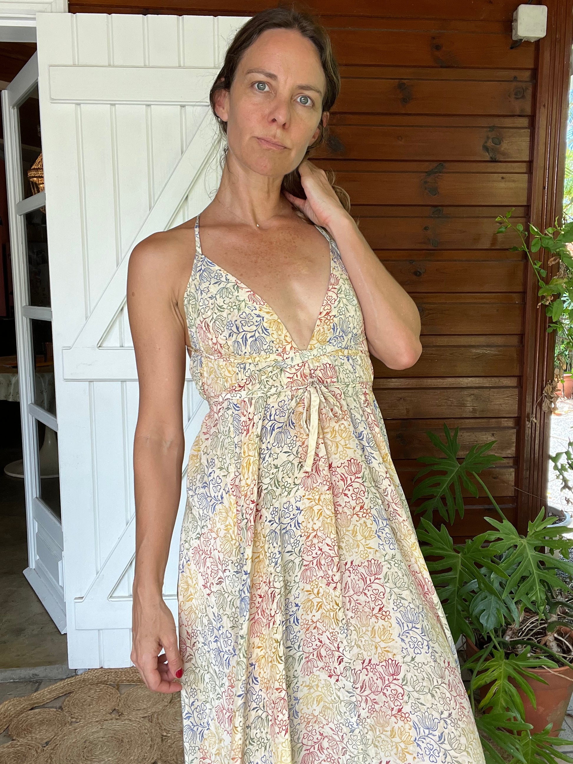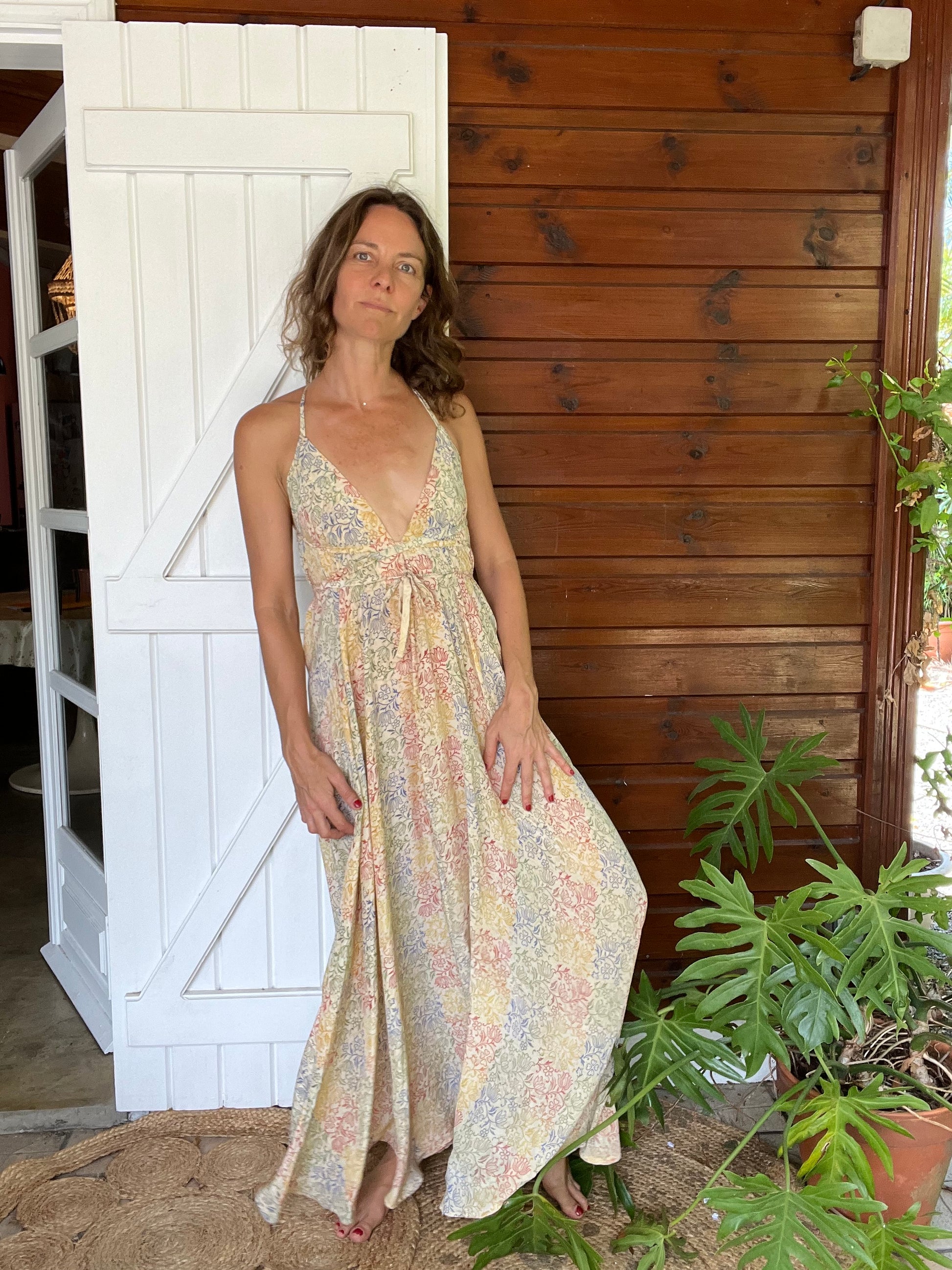 Notre Robe Azuima: bohème et sensuelle avec son joli dos. Vous pourrez user de votre créativité en lassant le lien à votre guise.