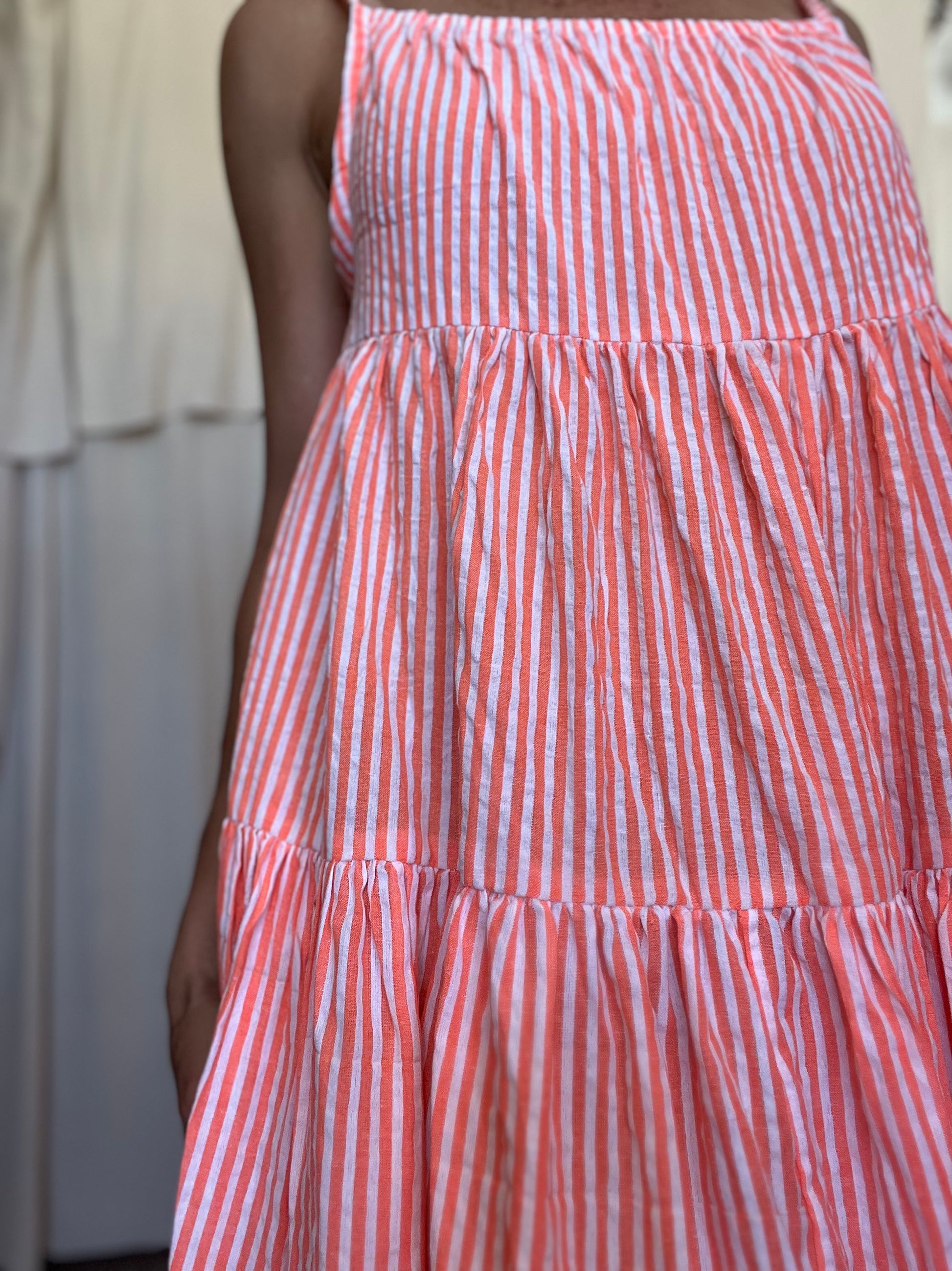 Robe Denise version longue. Des bretelles nouables qui permettent d'ajuster la robe et d'approfondir les décolletés comme on le souhaite.