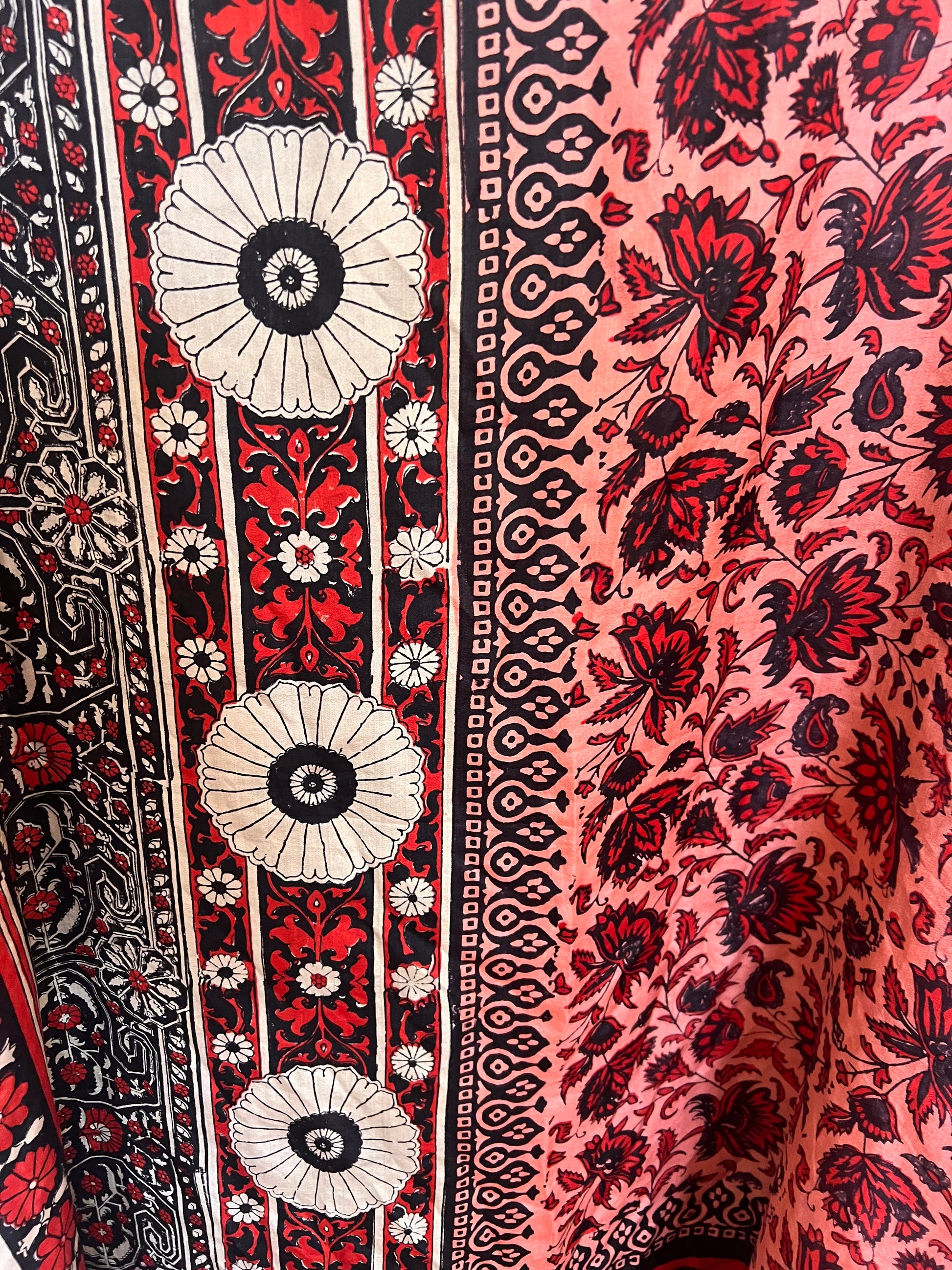 Robe en soie 100% naturelle issue d’un sari ancien. Coupe caftan.