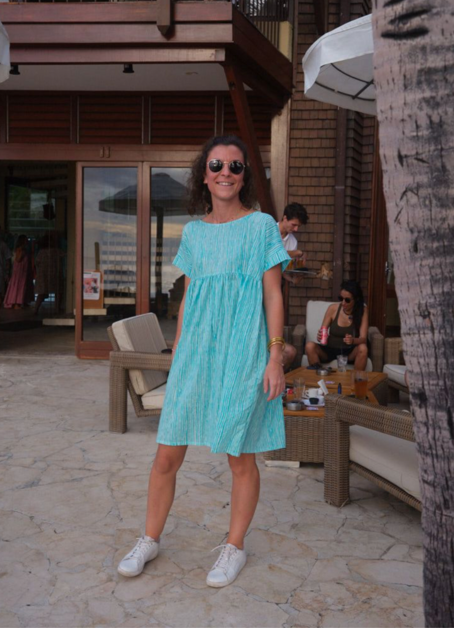 L’impression a été réalisée à la technique ancestrale du blockprint. Ce processus artisanal donne à chaque pièce un caractère unique.